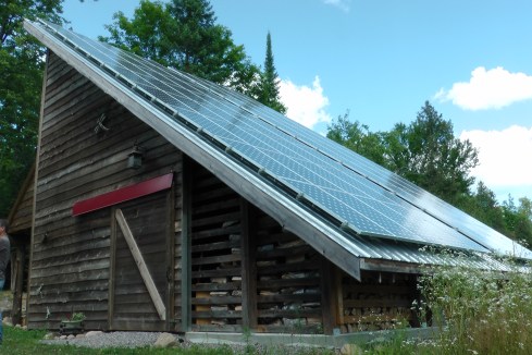 This is the shed, designed especially for the solar panels. The roof faces south and is large enough to provide most of the electricity for the house, on average. For example, last year the panels produced 110% of the annual electricity usage. The output varies with the season: more in the summer, less in the winter. It is part of the microFIT program that we mentioned previously: electricity generated by the panels feeds back into the grid.